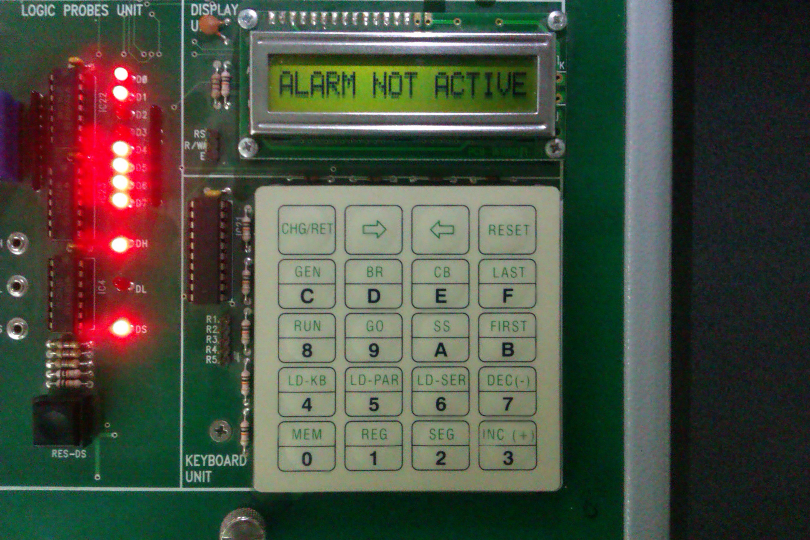 Logica codului implementat pe EV/Z3 este simpla: activam alarma introducand un cod de la tastatura(in cazul nostru 1234(caz in care parola a fost introdusa gresit programul reintra in bucla de citire parola)), asteptam sa primeasca sau comanda de dezactivare alarma sau prin portul serial un semnal de la unul dintre posibilii multi senzori, in urma caruia activam starea de alerta. Dupa activarea starii de alerta apasam pe butonul de introducere a codului de dezactivare.