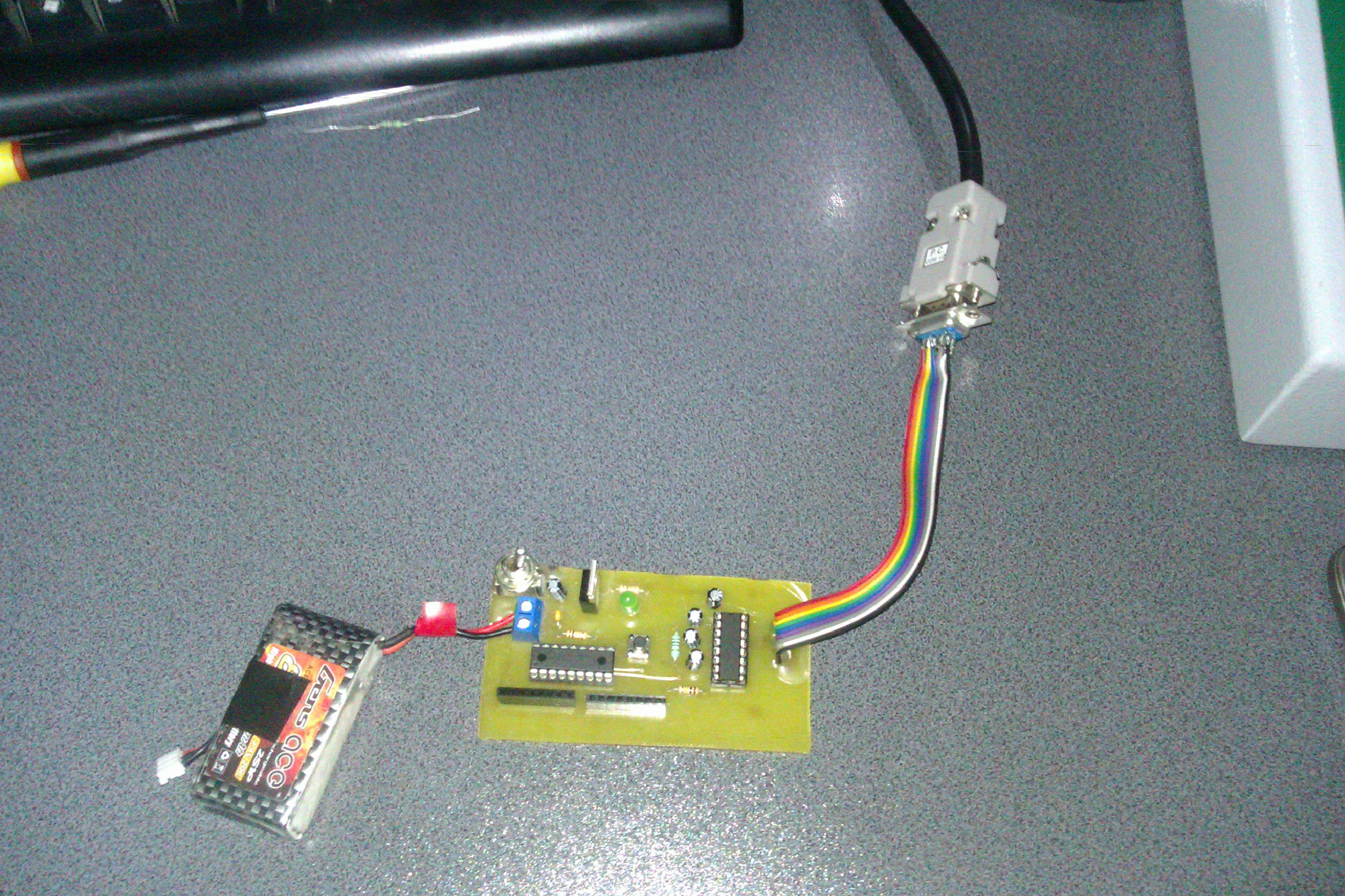 PIC 16F628A, 7805 pentru stabilizarea de tensiune, 5 capacitati de 50 uF, 1 capacitate de 10uF, UT232Al, LED verde(verificare daca e circuitul pornit), buton pe 4 pini(pentru reset), switch pe 3 pini(2 pozitii(pentru pornire/oprire)), baterie lipo 7.4V (alimentare), 4 rezistente.